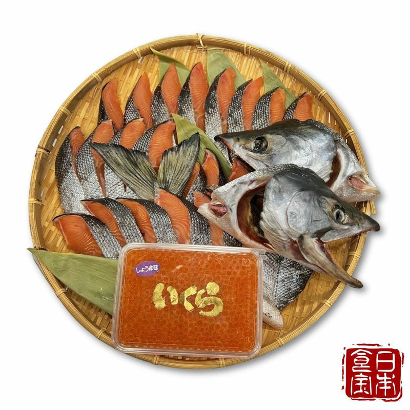 ・新巻鮭 寒風干し 北海道産の鮭を使用しており、 三陸地方に昔から続く伝統の味。 銀毛鮭で適度な脂があり、塩加減は中辛です。 ・いくら醤油漬け 秘伝の減塩甘口のタレに一晩漬け込んだ 三陸イクラの昔ながらのプリプリ食感! 贅沢な味わいを楽しめる、冬限定ギフトセット。 是非この機会にご賞味ください。