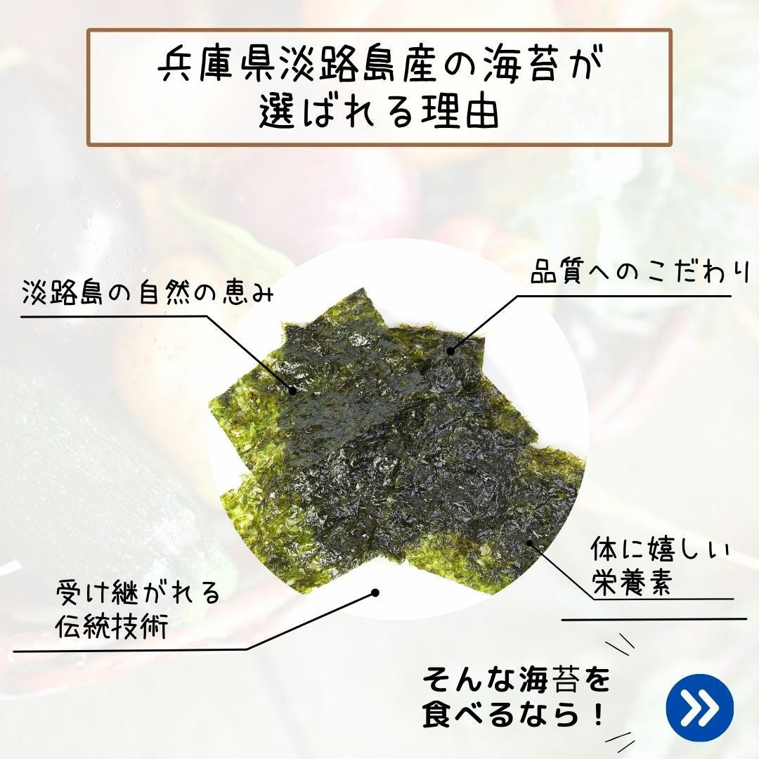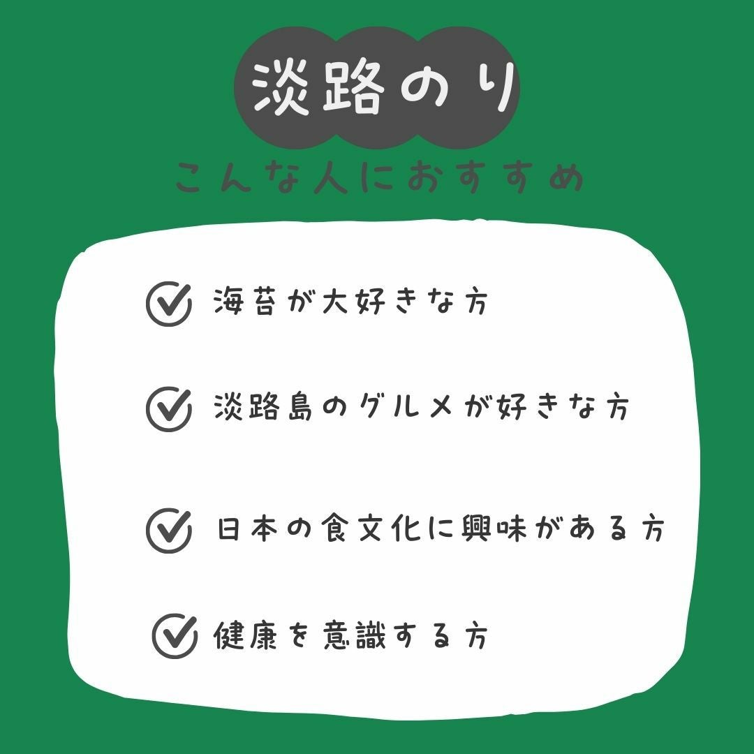 他の画像を見る 淡路島からの贈り物、一枚の海苔に込められた豊かな海の恵み。 【兵庫県淡路島産】塩淡路海苔3セット(産地直送) 送料無料 当店特別価格 ¥ 3,800 税込 淡路島からの贈り物、一枚の海苔に込められた豊かな海の恵み。 カートに入れる お気に入りに登録する