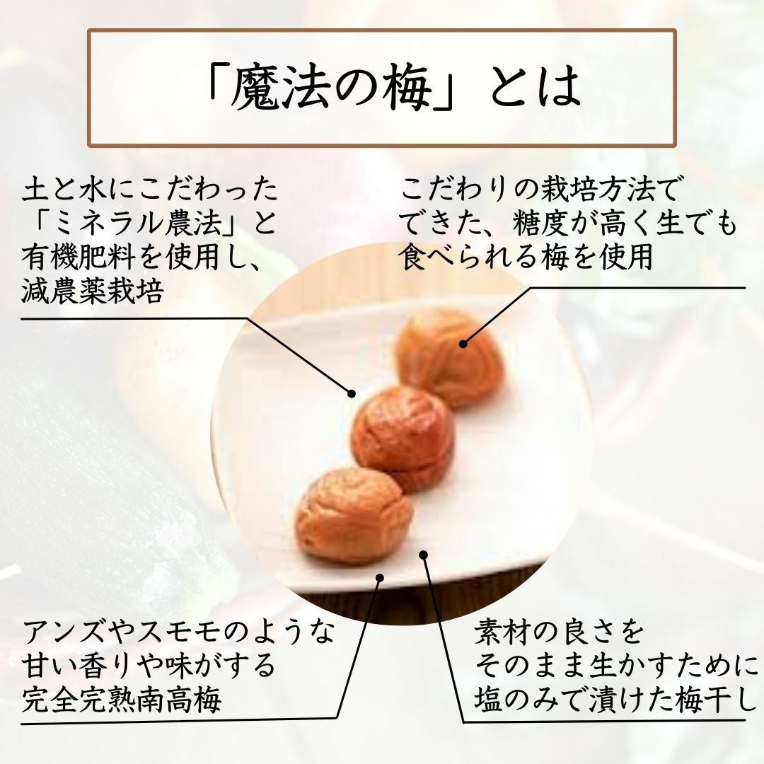 他の画像を見る 体にやさしい無添加仕上げ、紀州南高梅の自然落下した完全完熟梅 【和歌山県産】白干し梅 魔法の梅 ご家庭用【竹】(産地直送) 送料無料 当店特別価格 ¥ 3,050 税込 〜 当店特別価格 ¥ 税込 体にやさしい無添加仕上げ、紀州南高梅の自然落下した完全完熟梅 詳細を見る お気に入りに登録する